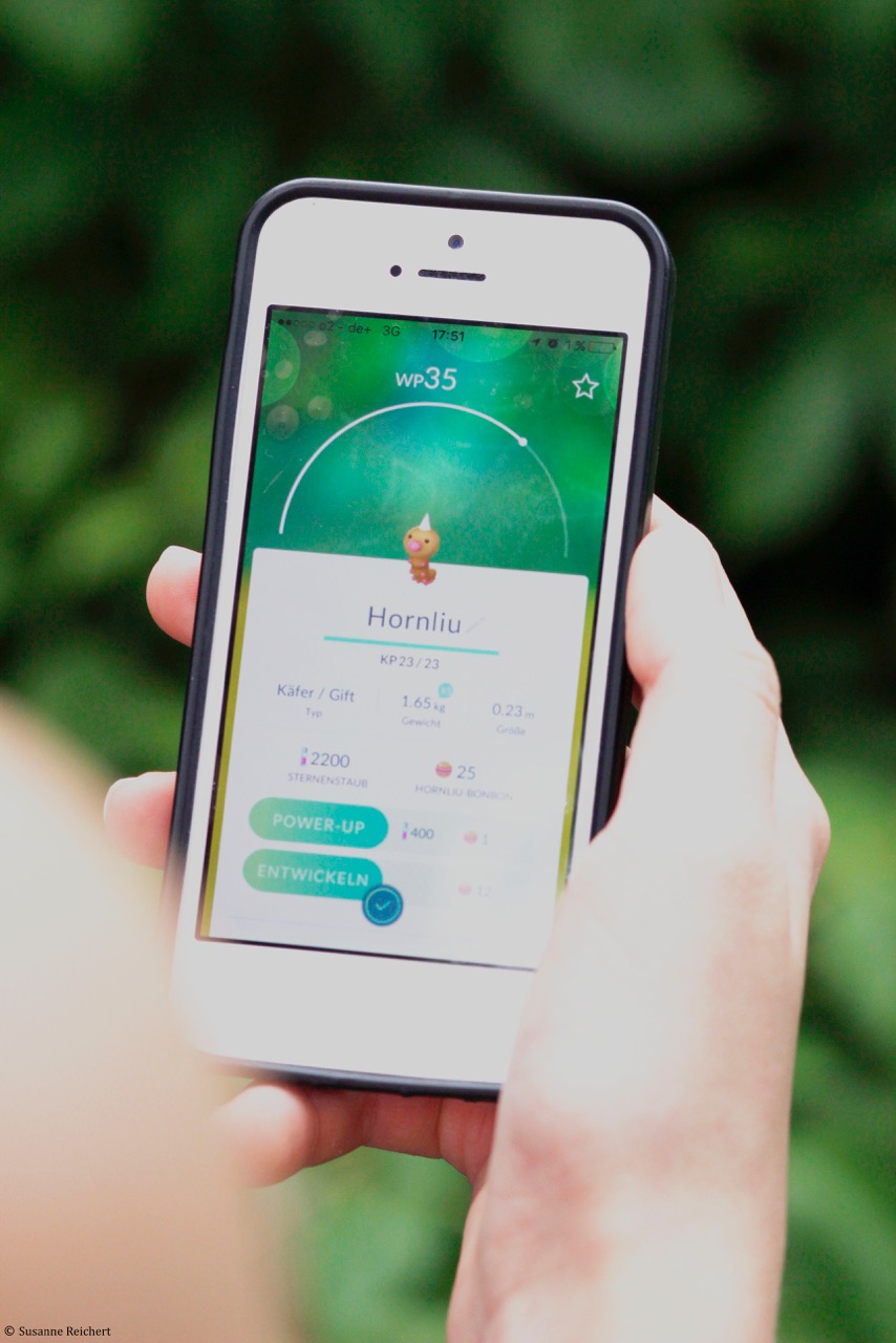 Auf meine irritierte Frage, wen oder was sie genau hätte, bekam ich nur als Antwort: „Da saß ein Pokémon.“ Nicht wahrnehmbar für mein Auge, genauso wenig wie das Wesen, das in der Zitronenmelisse versteckt war oder angeblich mitten auf unserem Esstisch saß! Figuren zu fangen, die nur auf einem Display sichtbar und für Normalsterbliche nicht wahrnehmbar sind, bevölkern plötzlich sogar das Eigenheim – das macht mich zugegebenermaßen etwas nervös.